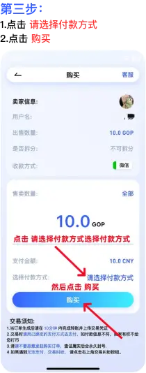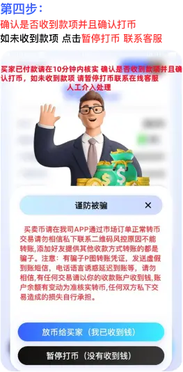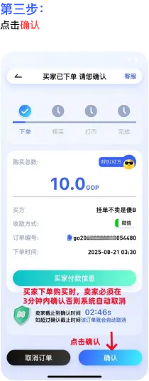 挂单、付款、打币;买卖只要三步骤即可完成